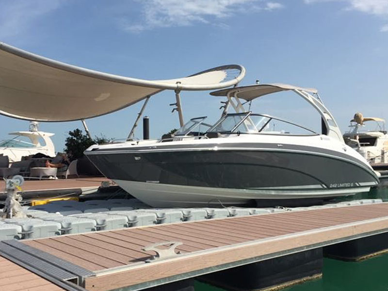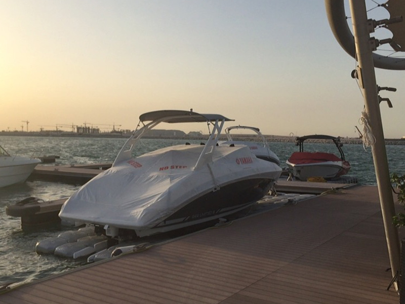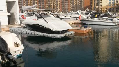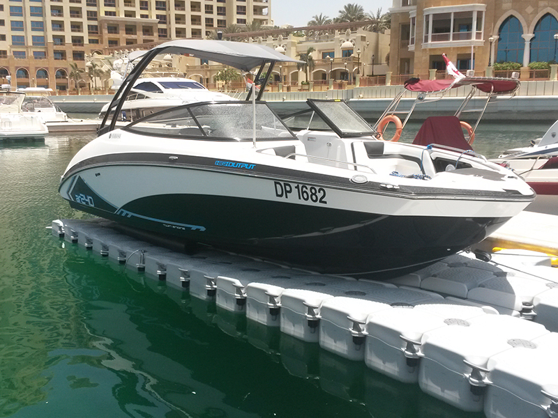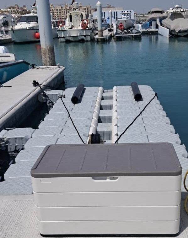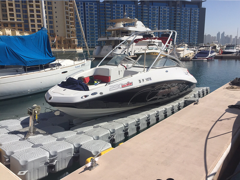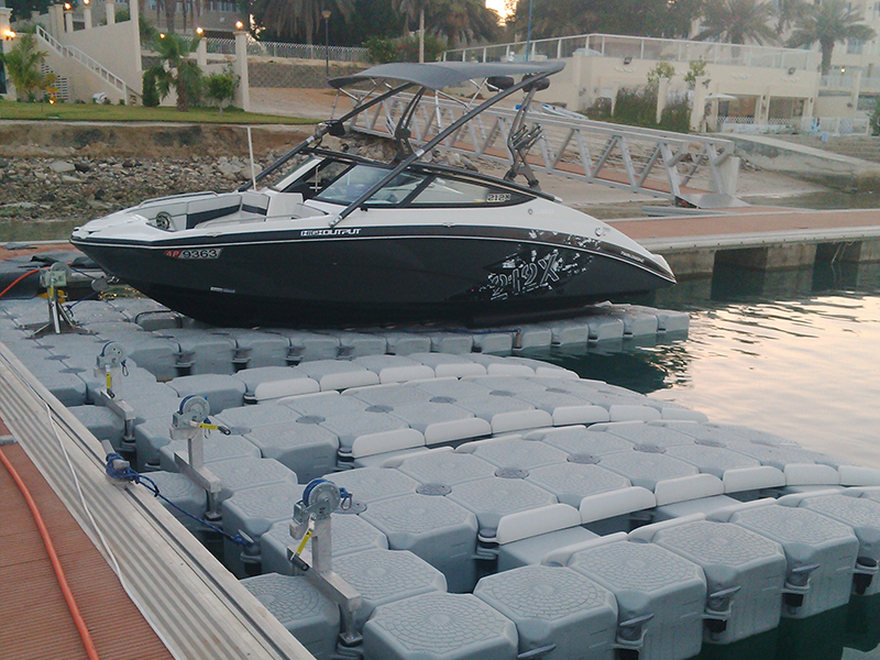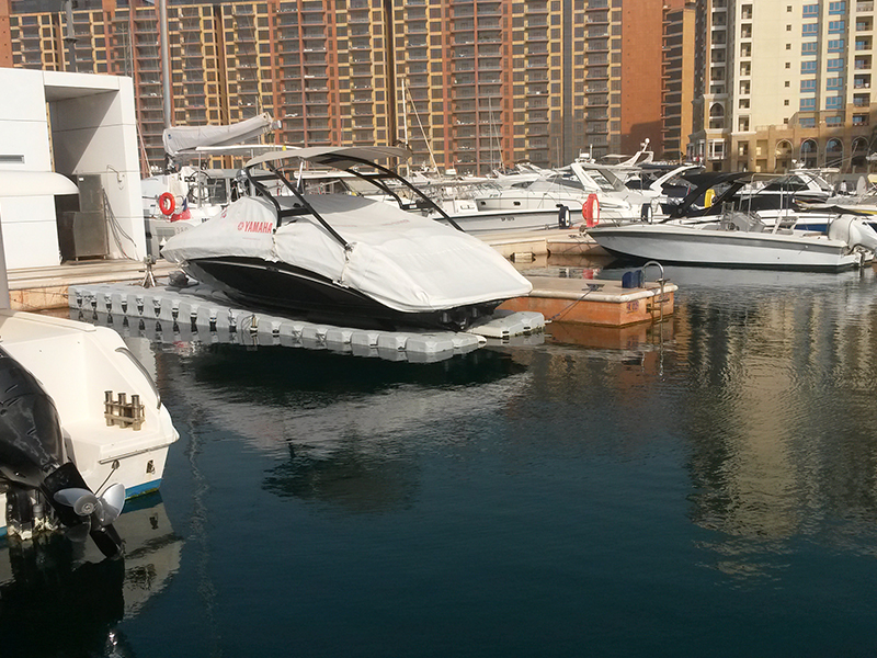 With our floating pontoon dry-docks you could dock your Jet-Ski on the water, yet out of the water! Simply drive on our pontoon dry-dock where your Jet-Ski will be raised completely out of the water. Then launch it back into the water easily manually. You can easily Jet Ski Drive on Dock. Our cubes have a premium anti-skid design on the surface to ensure safety and stability. They also have a long lifespan of over 10 years without any preservation or maintenance expenses. We also offer Boat Life and PWC lift facilities. To know more, kindly contact us.