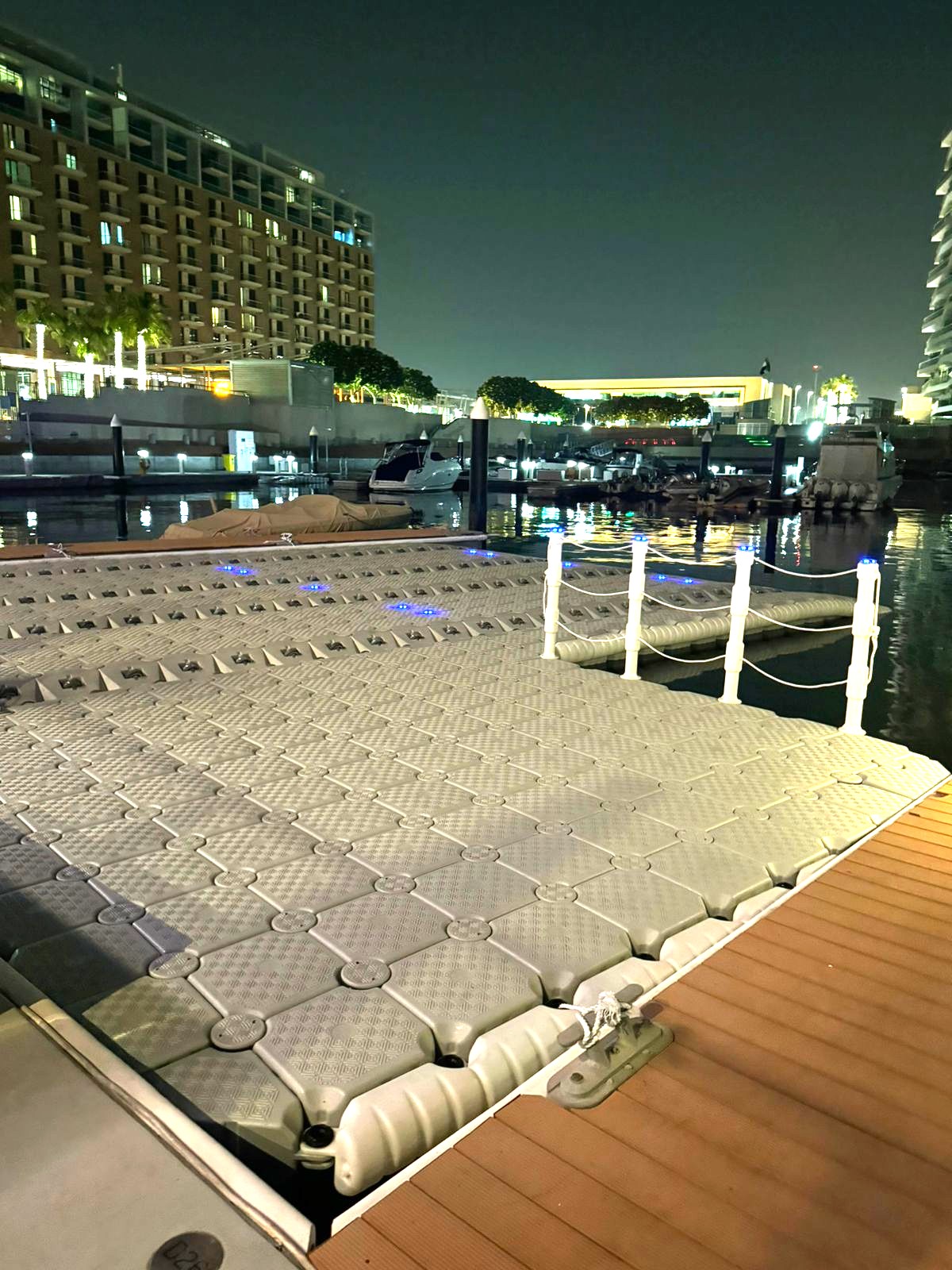 Say Good Bye to Anti-Fouling! With our floating pontoon dry-docks you could dock your boat on the water, yet out of the water! Simply Jet Boat Drive on Dock where your boat will be raised completely out of the water. Then launch it back into the water simply using our advanced signature winch system. You can easily drive on boat dock as our cubes have a premium anti-skid design on the surface to ensure safety and stability. They also have a long lifespan of over 10 years without any preservation or maintenance expenses.